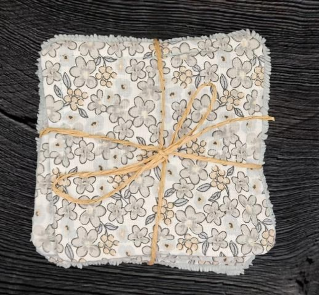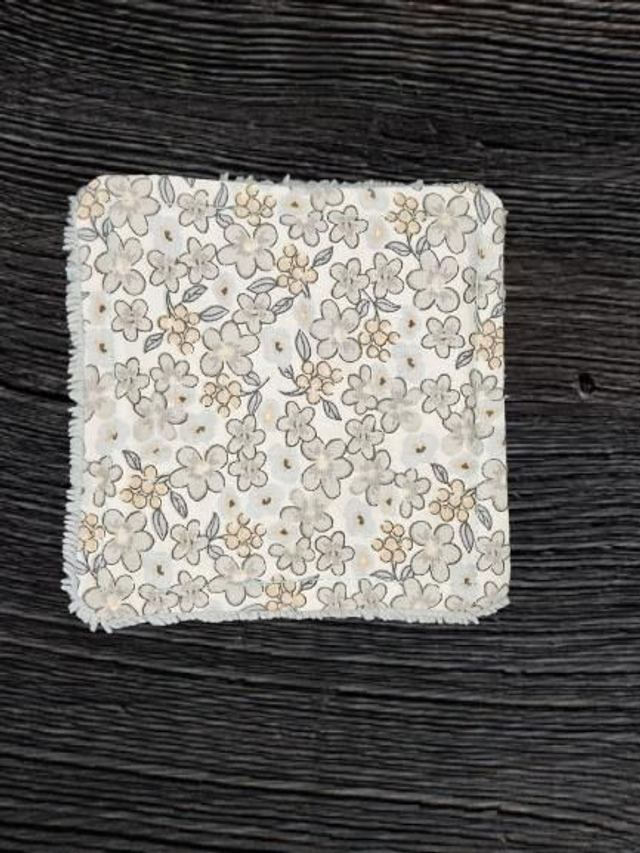Lot de 7 cotons lavables fleurs grise